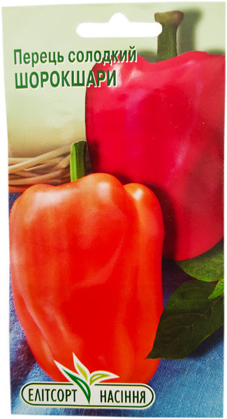 Перець солодкий Шорок Шари - ранньостиглий сорт, до технічної стиглості - 115-117 днів. Плід масою 150-250г, пірамідальної форми. У біологічній стиглості плід оранжево-червоний, у технічній – світло-жовтий. Товщина стінок 6-8 мм. Кущ заввишки 50-70 см. Культура тепло та вологолюбне. Розміщувати краще на сонячних ділянках, захищених від вітру. Вирощувати розсадним способом, найкращий вік розсади – 55-65 днів. Не рекомендується вносити свіжий гній - це знижує врожай плодів та їхню якість. Висівати насіння на глибину 2 см.